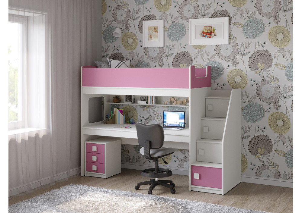 Учебная зона со столом под спальным местом открывает возможности для письменных работ,а также здесь удобно расположить ноутбук, а вместительная тумба поможет в хранеии канцелярских принадлежностей и учебников.